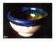 最后唐代掌握了钴蓝发色技术,创造了钴蓝在陶瓷釉彩上成色纯正的辉煌。有了钴蓝料,将它应用到陶瓷钴蓝釉彩上,还需要相应的烧造工艺技术。钴蓝釉彩对窑内火焰气氛有很高要求,要以还原焰烧成。这是一种在烧窑时由于空气供给不充分,在燃烧不完全的情况下产生的一种火焰气氛,在这种气氛下,窖内温度高低对钴蓝釉彩成色影响极大,温度过低钴蓝成色不纯正,温度过高钴蓝成色蓝中带黑。从实物上钴蓝釉彩的发色可以看到,十分鲜艳纯正。这充分说明在唐代已经掌握了钴蓝成色技术。
