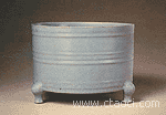 钧窑 宋代五大名窑之一,因所在地河南禹县古称“钧州”而得名。钧窑器物有盆等。钧窑的特点在于它的釉色。它虽然属于青釉,但是釉层不透明;由于釉料中含有铜,釉色呈现天蓝、月白等多种变化,还出现玫瑰紫、海棠红等不规则的彩色斑块,装饰在花瓣形的花盆、笔洗、香炉等器物上,别有一番自然天成的韵味。北宋时期,钧窑有一部分窑场专烧御用瓷,被称为“官钧”。这部分产品设计高雅优美,制作时不惜工本,质量精益求精,成为历代收藏的珍品。钧窑还影响到周围的许多窑场竞相烧造钧釉器物,形成一个瓷窑体系。