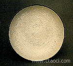 定窑 宋代五大名窑之一,是当时最有名的白瓷窑口。定窑白瓷胎体洁白,质地白色。不论碗、盘还是瓶、罐,常常装饰着划花、刻花或者印花,纹饰题材有莲瓣、龙凤、牡丹、莲池游鸭、婴戏、鸳鸯等。定窑还发明了一种烧制碗类器物的先进的装烧技术,叫做“覆烧”,把过去一个匣钵里正着装一件碗坯,变成多件器物扣叠在一起,形成一个筒形的组合式匣钵,这样就大大增加了装烧量,提高了生产效率。但是,覆烧的瓷器口沿不能上釉,于是工匠们又在这些芒口的碗、盘口上镶包了金、银或铜口,成为一种特殊装饰。定窑除了大宗的白釉瓷器,还烧制少量的酱釉或绿釉器,酱釉器又称“紫定”,是传世稀少的珍品。