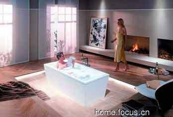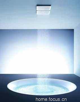 这个卫浴套间算得上是目前最高端的明星产品了,每个组成部分都突破固有的卫浴设计,以高科技实现了水与电子的完美结合,已于今年4月全球同步上市。座便器为恒温加热的卫洗丽,彻底清洁人们的私密部位;花洒充分兼顾到各个体位的清洗需要,台盆和浴缸龙头涌出的都是瀑布式水流,拂过手面、身体的触感轻柔,而且自动出水。最不可思议的是智能浴缸,通过真人模拟发声的遥控器可以完成各种复杂操作,还有柔媚的灯光投射其中。这种整体式卫生间,打破了原本复杂而固定的卫生管道设计,像搭积木一般使施工更加专业、快捷,便于维修与维护。
