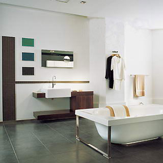 优雅出场的卫浴间因为空间的富余可以任由自己设计,墙面、地面的瓷砖可以拼贴出图案,各种设备可以选择统一造型,甚至能使用壁纸来装扮卫浴间。