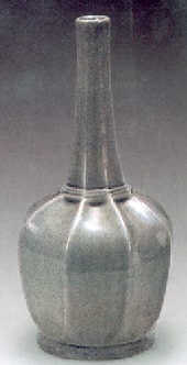 东晋中期以后,越窑青瓷多为日常用具,如烛台、灯、盆、钵、盘碗、壶、砚等,造型趋向简朴,装饰简练,纹样以弦纹为主。