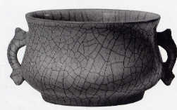 其四、"紫口铁足"的风致,哥窑器坯体大都是紫黑色或棕黄色,器皿口部口边缘釉薄处由于隐纹露出胎色而呈黄褐色,同时在底足未挂釉处呈现铁黑色,由此,可以 概括出故有"紫口铁足"之说,这也是区别真假哥窑器的传统方法之一。