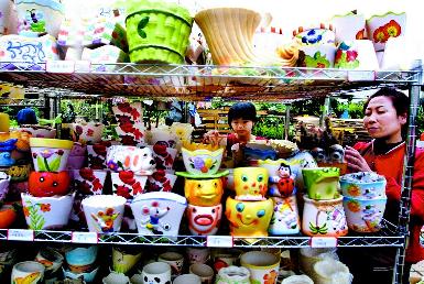 天山网讯(记者钱铤摄影报道)在乌鲁木齐市明珠花卉市场袖珍卡通工艺陶瓷花盆越来越受到消费者的欢迎。目前,很多疆内及哈萨克斯坦的批发商都将目光放在了这种花盆的经营上。据了解,这种卡通花盆的售价每个在5—30元不等。