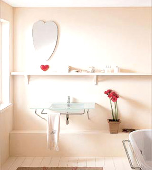 想要收纳的物品如果不是特别多,可以在面盆上方设置这种长形搁架