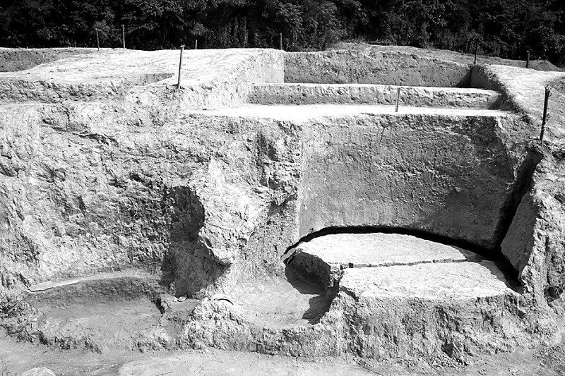 三座馒头窑也相当有特色,编号为Y6的馒头窑由窑室、火膛、火门、烟囱、操作间组成,窑箅局部用残砖所铺,整个面呈青褐色,中间置有一凹进的火道,将窑箅分开。火膛位于窑室的东端,平面呈椭圆状,在窑壁底部置有一周环形火道。烟囱位于窑壁一侧端,与中火道、火门、操作间在一轴线上,向外呈倒八字状。操作间平面呈椭圆形,并设置有二层台。火门长125厘米,宽残存50厘米,深25厘米,周壁全留有灰屑痕迹。Y9馒头窑保留有火道、火膛、火道挡墙、环形火道、窑室、烟囱,它没有采用中间火道,一端与火膛相通,另一端与烟囱相接,它是目前宁波地区发现保存最完整的古馒头窑址。