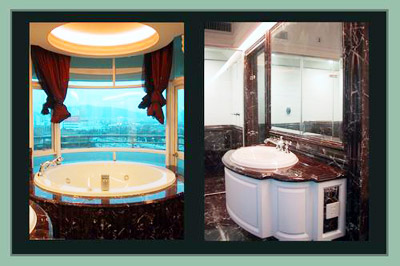 要营造一种舒适的沐浴环境需要考虑很多因素。在整体设计上,要设想好各类洁具的摆放位置,地面、墙面、家具的色彩和材质的协调,包括光源的设置;在使用上,还要考虑在周边配置好适当的硬件,例如衣架、小浴柜等;在情调上,阳光、通风、外界环境的介入等需要仔细斟酌。
