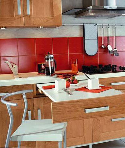 但在较年轻使用对象中,操作者一般都比较活泼,厨房家具的色彩可以使用比较热烈活泼的原色,或明度与纯度都比较高的其他色彩,如红色、蓝色、绿色等。对于绝大多数的厨房家具色调应以柔和为主,不直接采用原色,或不宜采用被认为是不干净的色彩和不能刺激食欲的色彩。