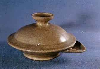 早期 从东汉中叶至隋代的500年间,上林湖的制瓷作坊不多,处于就地销售的小规模生产阶段。从窑址的地形和废品堆积状况分析,很可能是龙窑。东汉窑具有圆筒形、叭形垫座和三足支钉等;晋代和南朝有钵形、叭形垫座和盂形齿口间隔具等。东汉常见的产品有碗、钵、樽、罐、壶、锺等。瓷胎呈淡灰色,施青或青黄色釉。晋代以生产碗、盘、钵、罐、壶、鸡首壶、砚为主,施青釉,常见的纹饰有弦纹、斜方格纹和褐色点彩。南朝时以碗、盏托、罐、壶为主,也有钵、砚和鸡首壶等。碗分大中小多种,多数外壁划莲瓣纹。胎呈灰白色,施青釉,釉层均匀柔和,胎釉结合紧密。