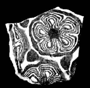绞胎器也有少量发现,均为长方形小枕残件。枕面用褐白两色瓷土相间排列,经过巧妙加工后成为一组组镶嵌在枕面上的团花。从残片的断面可看出,绞胎只占枕面厚度的三分之一,其余为白胎,这不但可节省用料,而且说明绞胎的制作非常费工,难度较大传世唐代绞胎瓷枕较多,有的底部刻有“裴家花枕”和“杜家花枕”字铭,可知花枕是这类绞胎枕的特有名称,巩县窑可能是烧造花枕的重要地点。