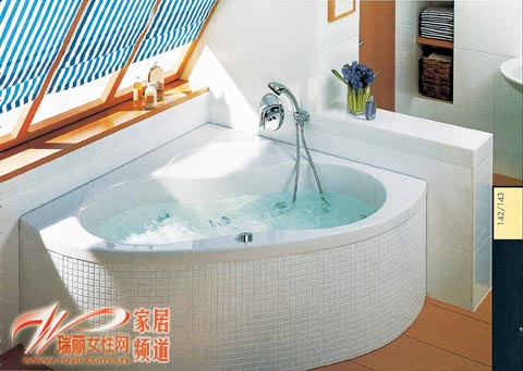 如果卫浴间是全落地式斜屋顶或者是斜屋顶下方特别低,这时候可以选择适合角度的三角形浴缸。这样就避免了倾斜的角度,大大提高了其舒适性。