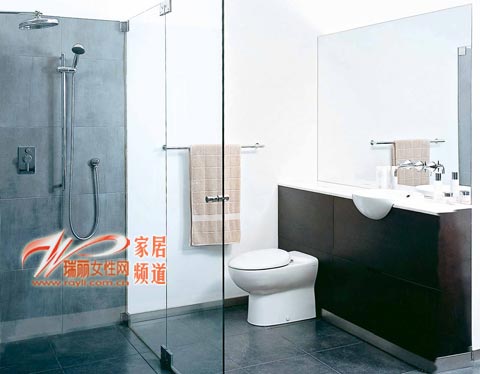 安装有淋浴房的浴室间,可以把淋浴房的面积做得稍大一点,最好能放下一个小凳子,门口铺块脚感好的地垫,即使是洗淋浴,也会很舒适。为了保持室内空气的清新,坐便器旁少不了一个密封性能好的垃圾桶,湿毛巾、浴巾可以搭在独立式毛巾架、浴巾架上,换下的衣物可直接装进淋浴房门外的洗衣袋里,只要添置几样便携式小家具,浴室生活即可过得轻松自在。
