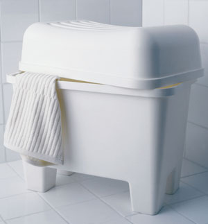 浴室凳,内部可以储物,底部有排气孔让物品保持干燥。老人或者小孩在卫生间里觉得累时都可以坐在上边休息。