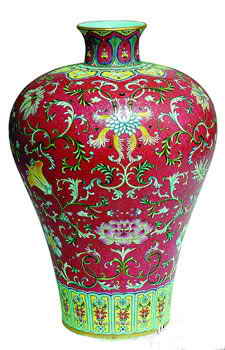 乾隆朝时粉彩极为盛行,在瓷器领域中已取代五彩,趋于主导地位。器物以新、奇、巧而闻名,呈现出一种雍容华贵、玲珑精致的风格。题材内容广泛,在传统的花卉、禽鸟、山水、人物的基础上,增加了大量寓意福禄寿、太平盛世、伦理道德等方面的内容,很多纹饰运用谐音来表达吉祥的祝愿,脍炙人口。