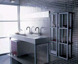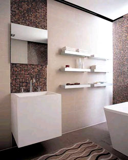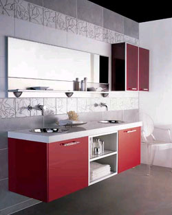 鲜亮的颜色永远不会被设计师遗忘,在经过一个沉沉冬季后,博洛尼已迫不及待地推出这款火红的卫浴主题墙,夏日的热力激情势不可挡,尤其能凸现摩登女郎们的惊艳魅力。2006年的亮色主题较往年更大胆,通体的红色烤漆浴室家具加上银色不锈钢入墙龙头,以及如蕾丝般的ArtDeco风格瓷砖装饰,就这样整体造型吧,即便是十分自我的卫浴空间,也要Show出最响亮的时尚宣言。