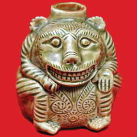 狮形烛台产于西晋越窑已被许多古瓷专家所认定。但在江西则出现于东晋,时间比越窑晚,形状从越窑的卧伏状变为蹲伏状,胎呈灰白色,釉以米黄色为主,普遍开冰裂纹,脱釉现象严重,与笔者收藏的西晋越窑狮形烛台完全不同。狮形烛台在东晋时仍有少量出土发现,但都比较粗糙,多为仿西晋越窑制品,窑口和胎、釉也不尽相同,并且普遍采用褐彩装饰,东晋晚期出现莲瓣纹。南朝时在福建等地流行双管、四管、莲花形烛台;浙江绍兴南朝墓出土一狮形架座烛台,狮首左顾,尾上翘、四肢伏地、背上负一方座,座上又置长方形横梁,梁上有三个烛管,已完全没有西晋越窑狮形烛台优美的造型和厚润匀净的釉色。由此说明,卧伏状背上负单管烛插的青釉狮形烛台和蹲伏状头顶负单管烛插的青釉狮形烛台只流行于两晋 西晋公元265 316年、东晋公元317 420年 的155年之间。