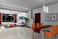 此案例在整个装修风格上以简约定位,通过简洁明快的色彩搭配,使空间感加强。电视墙以沉稳的颜色作为视觉中心,既不多花钱又达到了温馨的效果;餐厅主要对顶面天花进行了设计,从而使连接在一起的餐厅客厅,在空间划分上得以界定,同时在高度上削弱了横跨在客、餐厅之间结构梁给人造成的压抑感。门是家装的一张脸,设计师根据业主的性格把它的色彩定位在了黄色,进一步对家居色彩进行渲染、空间的温馨进行了延伸。一切以简洁为主使整个空间虚实相间是设计师的主导思想。 黄兰/整理