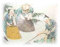 婴戏纹 所谓婴戏,即以婴儿为画面的主角,描写儿童钓鱼、玩鸟,蹴球、赶鸭、放鹌鹑、抽陀螺、攀树折花等种种活动,着墨不多而情趣盎然。