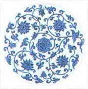 缠枝纹  明代或称为“转枝”,是最为常见的装饰纹样。它以植物的枝干或蔓藤作骨架,向上下、左右延伸,形成波线式的二方连续或四方连续或用以填充装饰面。有的还转变为散点式的二方连续形式。