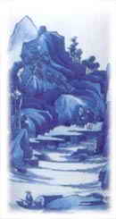 山水画 在元青花、釉里红中,山水画开始显露头角。明代民窑青花,山水装饰已矗立于陶瓷艺术之林。山川乡气、楼台亭阁、田园风光、庭园小景均饶有情趣,且笔势洒脱,意境深远。清雍正、乾隆以来,多仿宋、元、明、清诸名家绘画笔意。御窑制作大多工整精细,而民窑产品则有明显的装饰性和质朴的民间风格。在画风上,康熙青花、五彩山水画中的山石,山石呈劈开的片状,系南宋画院派的风格,而雍正时期,则逐渐改用“披麻皴”,这是绘画界追随元代四王画派对制瓷工艺的影响。乾隆时期山水画的题材大量减少,而常以西湖十景及私人园钵之类,用写实的手法画在瓷器上。