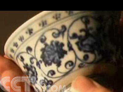 主持人:哎 怎么样,个头虽小,来头去不小,这就是一个仿的明代永乐青花压手杯,当然真的是在故宫里头。但是接下来呢我们就要讲一个关于仿的这个压手杯的故事。