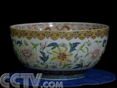 毛晓沪:这个吧,价格是比较难估的,为什么呢,就是这么大的东西,现在在市场上,没有见拍卖过,这是孤品,我曾经问过故宫的专家,我说的,像这么大的碗,故宫有没有,那么包括耿老,都说过,说根本就没有。也就是说这只碗应该是清朝末年从宫里流出去的,至于怎么留出去的,非常难说。因为呢,当初,当时呢,那个宣统,也就是溥仪做皇帝的时候,大量宫里的东西都曾经被太监啊,或者被溥仪啊带出宫里头,那么估计这只碗,也是在清朝晚期动荡的时候,从故宫留出去的。