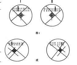 对于苏制ⅡMT-3型硬度计,其对角线长度的读数方式采用的内外读数兼有的十字线瞄准、两次瞄准读数方式,如图1所示。该读数方式鼓轮分度值对角线瞄准位置Ⅰ和位置Ⅱ有两次估算误差。