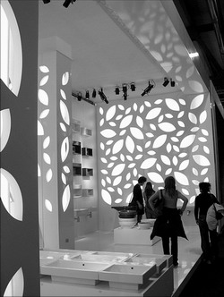 设计师何朝富说,ArtDeco是一种将图案镂绘在家居中的华丽艺术,作为上世纪20年代ArtDeco装饰风格的轮回,荷兰人托德布歇尔将其在奢侈品行业内重新演绎并吸引了全世界的眼球,ArtDeco风潮首先出现在时装界“最大胆、最具戏剧效果”的麦考林高级成衣店的店内装饰中。此次米兰卫浴展上,像CATALANO,REGIA等国际卫浴品牌都把ARTDECO新装饰主义贯彻得很到位,CATALANO甚至将整个展馆的几面墙面都采用了雕镂树叶图案,片片“树叶”中透出柔和的灯光,让展馆显得灵动而浪漫,成为ARTDECO最佳的立体诠释;而REGIA则将卫浴间的墙面以ARTDECO风格铺陈出一派黑白风情,夸张的镂花图案在墙面上大胆张扬,卫浴间的玻璃门、镜面、浴室家具上都镂绘着各种取自森林藤蔓、花卉、昆虫蝴蝶的图案,让卫浴的表情变得细腻多情。
