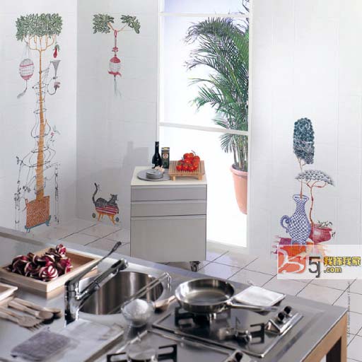 厨房的悦目,要由橱柜与墙面共同来调配。或美艳,或素洁,或质朴,而个中变化,就要看设计者的功力了。