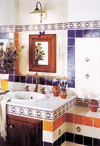 在地板方面,以天然石料做的地砖既华丽典雅又耐用;瓷砖地面清洗方便,容易保持干爽;而塑料地板的实用价值很高,加上饰钉后,其防滑作用更显著。现在,大部分家庭采用多种花纹和颜色的防滑耐磨砖,并根据空间的大小,配制多种规格的砖,大致有300毫米×300毫米、200毫米×300毫米、200毫米×200毫米等规格。墙面用方形或长方形的装饰瓷片,配以腰线、花砖、踢角线,增加整体美感。同时也可采用PVC扣墙板,简洁大方,纹路素雅。