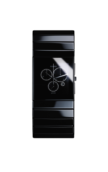 镶嵌着钻石的雷达整体陶瓷计时表真钻系列,展现出令人惊艳的魅惑。 表盘,采用蓝宝石水晶表镜;表壳及表带采用高科技陶瓷,通体黑色,浑然天成。作为整个系列的标志图形,非同寻常的线条设计令表呈现与众不同的气质。细节上的精湛设计,为这款极富科技感的计时表带来独特气质。推动式的计时按钮微微露出,再次显示了该款表的计时功能。