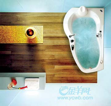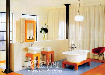 配件???提起浴室,人们首先想到的是瓷砖、面盆、浴缸、马桶等,而一些营造浴室气氛地小东西常常被忽略。比如,牙刷、口杯、皂盒组成的系列用品,比如防水作用的置衣篮、纸斤筒、化妆包等,别小看这些小玩艺儿,它们各自担负自己的“使命”,为美化浴室可起着画龙点睛的作用呢。