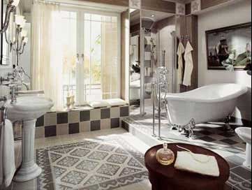 新古典主义风格在现代建筑装潢设计领域已成为一种时尚,宽敞华美是这间浴室的突出特点。浴缸柔美的线条、盥洗池贝壳似的外表,灵感来自于美神阿芙罗狄特从海中诞生的传说;水龙头、扶手、开关、浴缸脚等金属部件的造型取材于古罗马时代的雕刻立柱;朴实的砖石板块和装饰图纹与现代洁具巧妙结合,给人以精致、优美、典雅的感觉。在浴室中挂一幅油画也没什么不可以,只要注意防湿防潮。长长的百叶窗也挡不住这里如诗如歌般的人文怀旧气息。