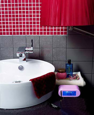 彩色地砖是突出的设计,粉色、红色与咖啡色自然过渡,穿插装饰,整个色彩环境让人感受到一种温暖和舒爽,并搭配同色系的浴室配件,呈现出独具魅力的女性气质。