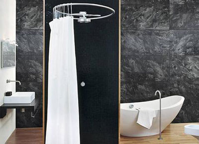 我们曾经介绍过很多款关于花洒的设计,有时尚前卫的“滑片式淋浴”,还有温馨浪漫的“变色花洒”。但是这些产品都仅仅是作为浴室的一个配件而已,假如能够直接用花洒来隔离出来一个浴室,做到一物两用,一定是个不错的主意。
