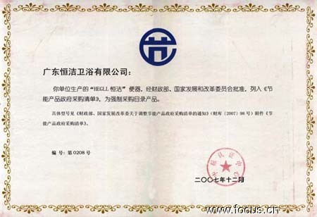 近日,根据《国务院办公厅关于建立政府强制采购节能产品制度的通知》(国办发〔2007〕51号)规定,中华人民共和国财政部、国家发展和改革委员会对“节能产品政府采购清单”进行了调整。恒洁品牌节水产品被列为首批实施政府强制采购节能产品,分别在中国政府采购网(http://www.ccgp.gov.cn/)、发展改革委网(http://hzs.ndrc.gov.cn/)和中国节能节水认证网(http://www.cecp.org.cn/)进行公示。