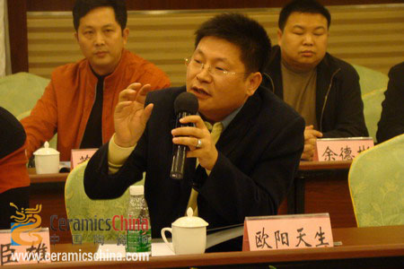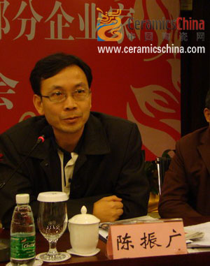 在交流会的讨论环节,广东省陶瓷行业协会秘书长陈振广、佛山市陶瓷行业协会秘书长尹虹、新中源陶瓷集团总裁兼总经理霍镰泉、佛山市欧陶无机材料有限公司董事长欧阳天生以及广东科达机电股份有限公司总经理边程等协会领导和企业家发表了讲话。他们各抒己见,在肯定夹江县政府班子的招商引资和扶持进驻企业投资建设工作的同时,也就近年来“西部瓷都”发展步伐减慢、夹江县陶瓷产业在品牌建设、技术改进、配套产业和软件环境建设等方面出现的不足展开热烈的讨论,向代表团领导提出各种富有建设性意义的建议。