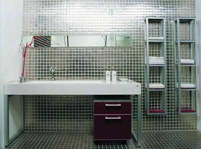 面盆下面的空间大有作为,是片“心有多大就有多大”的天地。放个带轮滑的小柜子,收纳平日里不常用的东西,既美观又方便,造型还任你摆。面盆一侧的两个四面镂空的竖架,简单大方,散发着青春的气息。