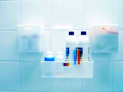金属筐式的最大优点就是四周有护栏,特别适合一些易碎品或高度较高的玻璃瓶。此外,还很能盛东西。这种款式应该很受大手大脚消费者们的青睐,搬来搬去也不至于晃荡掉。如果你啥质地的卫浴用品都有点儿,那这款收纳架最合适不过了。
