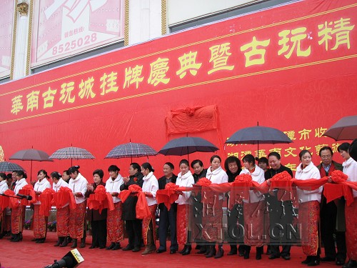 湘潭在线新闻网1月12日讯(记者:欧阳天 报道员:周知任)今日上午,占地9万多平方米的湘潭市华南文化艺术品古玩城在该市河东新区正式建成挂牌,这是湘潭倾力打造文化名城,提升城市品位的又一举措。省人大常委会副主任唐之享,市领导周放良、李四保、劳动、廖才定、谭山平、彭中泽、王少庚、易建军等为古玩城揭牌。