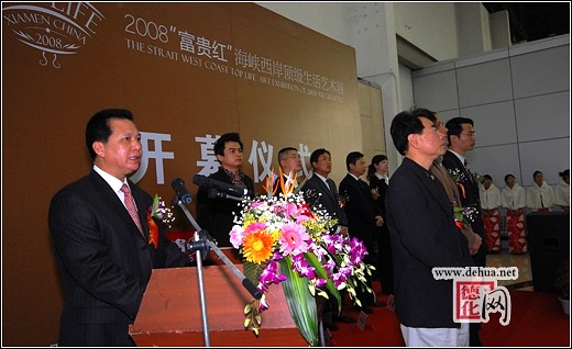 本次展会由世界奢侈品协会中国代表处主办,福建省富贵红文化发展有限公司冠名。德化县副县长黄耀昆、富贵红文化发展有限公司艺术总监徐少东等出席开幕式并致辞。展会邀请闽南金三角及海峡西岸各界财富人士、名流雅士及各知名媒体到场,在当天晚上还举办慈善之夜名流酒会,同时在酒会现场进行慈善拍卖活动,现场拍卖部分参展品,所得善款全数捐给慈善机构。
