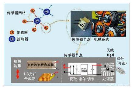 EH本身并不是新概念,诸如手摇无线电、手摇供电的电筒、风车和太阳能都是应用类似的理念。其新颖之处是将EH应用到超低功耗的嵌入式电子设备中。高电荷压电陶瓷和光纤合成工艺技术的结合使得自供电系统能用在很多种电子系统中。