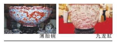 这些展品中,有一件《白玉深浮雕九龙特大缸》,是千件陶瓷中最昂贵的精品。此缸仿清宫珍藏,缸口直径88厘米,重量150公斤,是工艺美术师历时半年才精雕细刻而成。