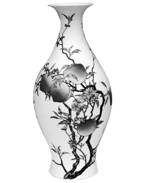 若以历史上中国瓷器胎、釉制作的精细程度而言,人们往往盛赞康熙、雍正、乾隆三朝的瓷器,而清三代中尤以雍正朝的瓷器具有胎洁、釉润、制作规整、器物造型秀丽、图案造型儒雅等多方面优点。可以说,雍正时期的官窑器达到了历史上的高峰期。清代康、雍、乾三朝帝王本人都关心翰墨,特别是雍正帝更连瓷器图案也亲自过问。他们当然都祈求吉祥,因此必然屡见历史上谐音的吉祥图案。2002年,惊现香港苏富比拍卖会的清雍正粉彩蝠桃纹橄榄瓶,正是雍正粉彩瓷器的代表。