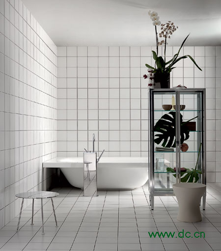 把盆花、盆栽作装饰品,具有独特的韵味,因为即使再昂贵的洁具,也无法比拟鲜花绿叶带来的生命色彩。盆栽可摆在物品架上、地板上、窗台上……只要有足够的空间和适当的日照,这些花草就会令每一个角落都生机勃勃,植物能吸收化学气体。再养几条热带鱼,整个浴室就春光明媚了。