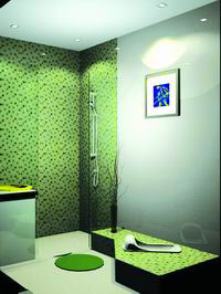 湿区和干区用挡水条分隔,挡水条由钢化玻璃以及活动的浴帘组成,两边的玻璃隔断宽420mm,中间有660mm宽的门洞,出入自如。