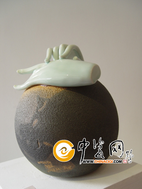 钟丹的陶艺《关爱生命》中,一双纤细的玉手抚摸着地球,瓷和陶两种不同材质形成鲜明对比,寓意丰富。徐宁的《仙女下凡》,颠覆传统,以丑写美,富有情趣。周诚的《包容》、徐青的《空间的联想》等,都显示了景德镇年轻一代的艺术水平。