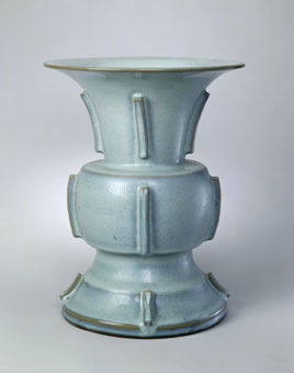 钧窑月白釉出戟尊,宋,高32.6cm,口径26cm,足径21cm。