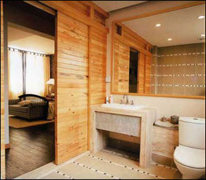 小卫生间的墙地面装修不必太过讲究,进口的高档瓷砖花费大,在小空间中又不易产生强烈的美感效果,倒不如使用几十元一平米的国产瓷砖。比如花开富贵的这款釉面光亮的艳色花砖,每平方米的价格只有57元,但却是国际流行的20×20厘米尺寸,而且表面是凸凹不平的,在灯光映衬下有种层次分明的光泽,显得空间大而亮。