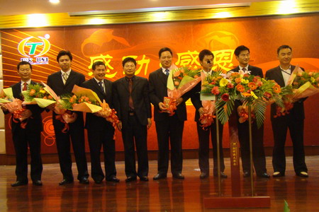 为表达一直关注与支持欧陶公司事业发展的员工及合作伙伴的感激之情,表彰晚会特意围绕“感动·感恩”主题,对“2007年度欧陶十大感动人物”和“2007年度优秀团队”进行了表彰奖励,公司欧阳天生、张俊峰和谢明辉等高层分别为获奖个人与团队颁发了证书和奖金。此外,为感谢老员工多年对公司的不离不弃,公司还特意在晚会上为数十名贡献3年以上青春与汗水的非股东员工送上了厚厚的礼物———每人5000元的现金。由公司员工自编自演的综艺节目贯穿晚宴的全过程,为晚会增添了浓厚的喜庆色彩和欢乐、喜庆的文化气息,一场压轴的《感恩的心》集体手语表演,将表彰晚会推上高潮。